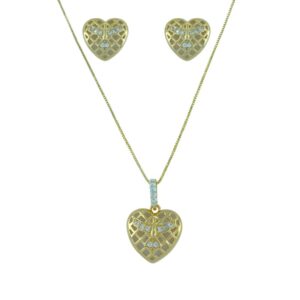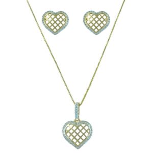Conjunto de coração vazado com bordas cravejadas em zircônia