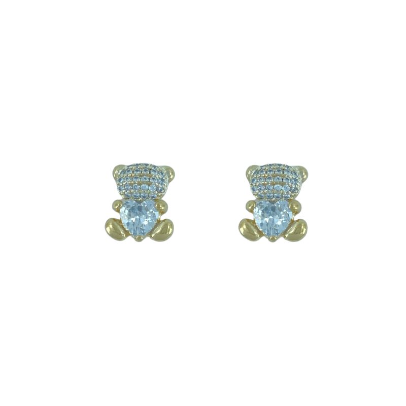 Brinco Ursinho com Pedra de Cristal em Formato de Coração